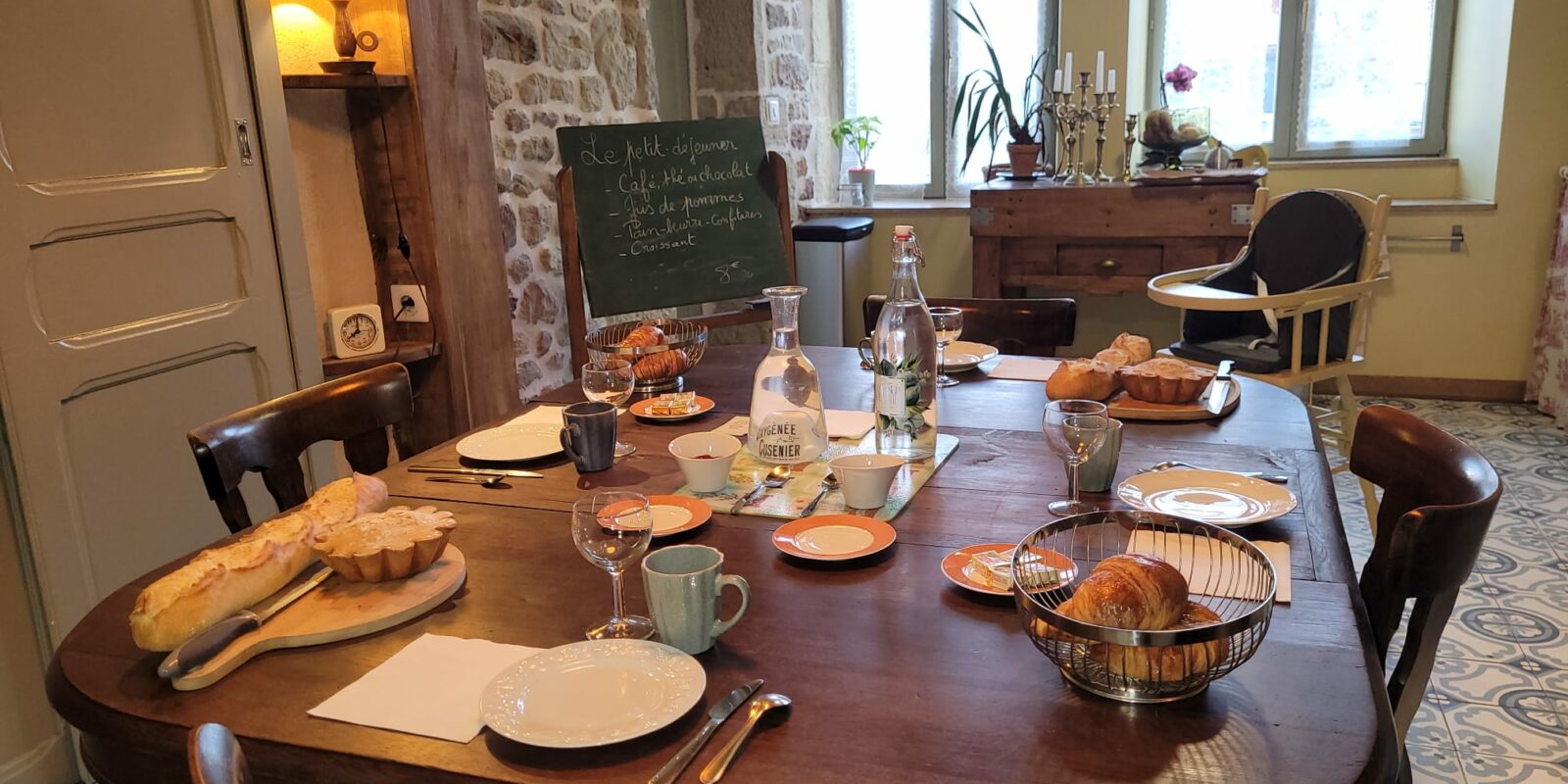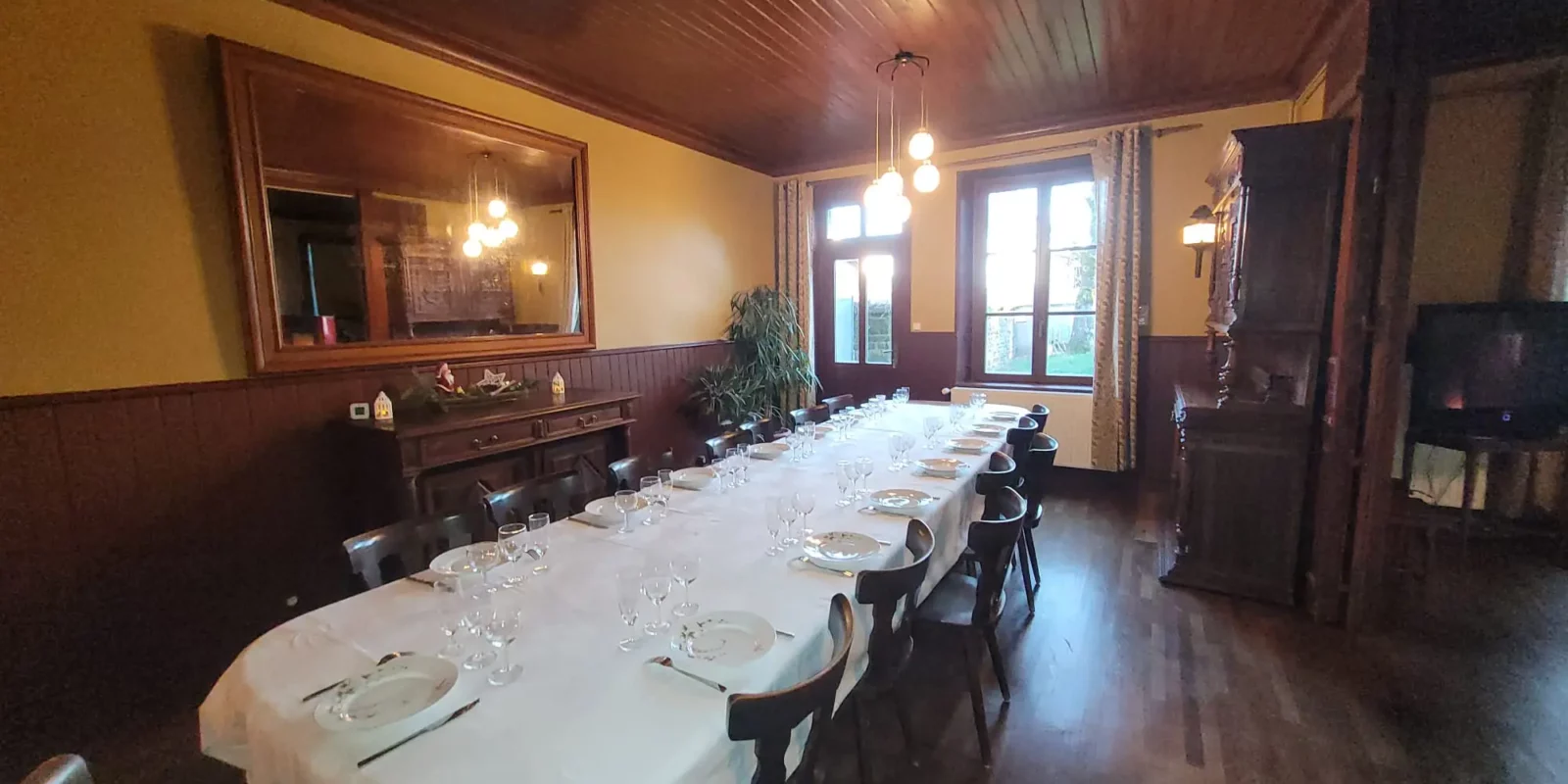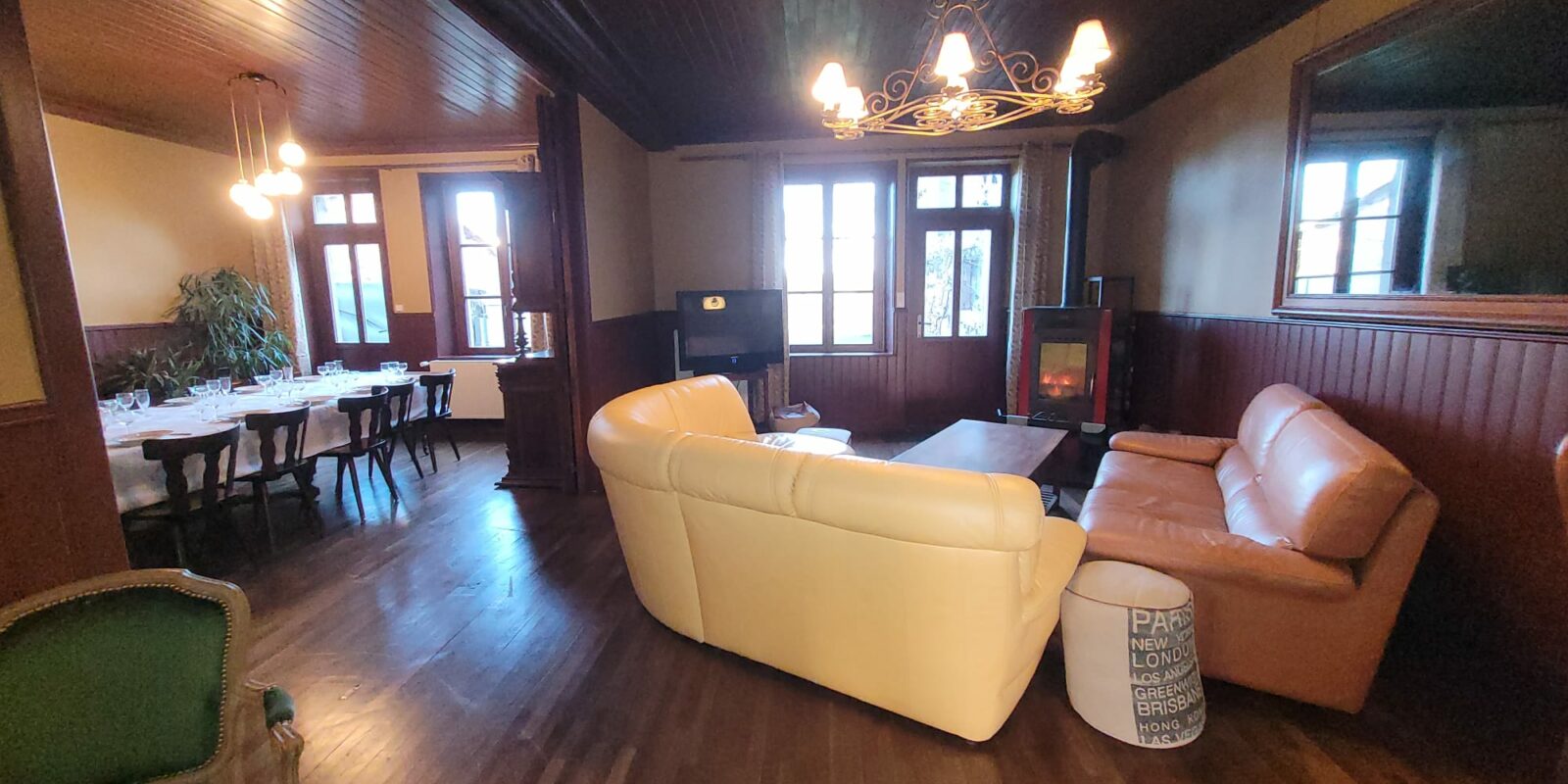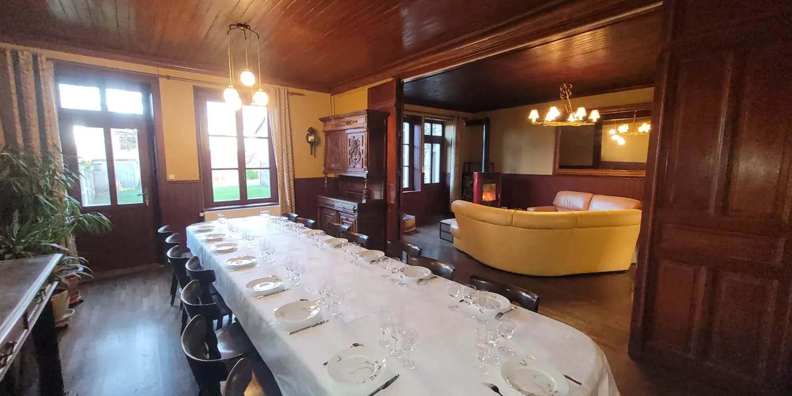 C’est l’ancien hôtel/restaurant Coeurdacier. C'était un petit hôtel familiale de village jusqu'en 1940. Nous l'avons entièrement restauré en gardant l'esprit du passé. Les boiseries, les meubles d'époques, ont été préservés dans la mesure du possible. Chaque chambre a son style. Le grand salon peut accueillir toute la famille sur la table déjà présente en 1910, avec une vaisselle soignée (et ancienne !). Le grand jardin entièrement clos, vous attend à l'ombres des frênes, des bouleaux et d'un érable.