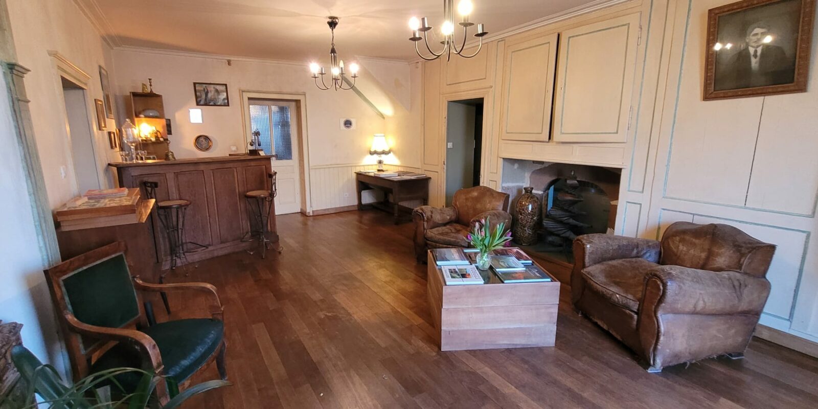 Chambre de plein pied Maison Cœurdacier Monthureux‑sur‑Saône Vosges — grand lit, fauteuils et décoration chaleureuse.